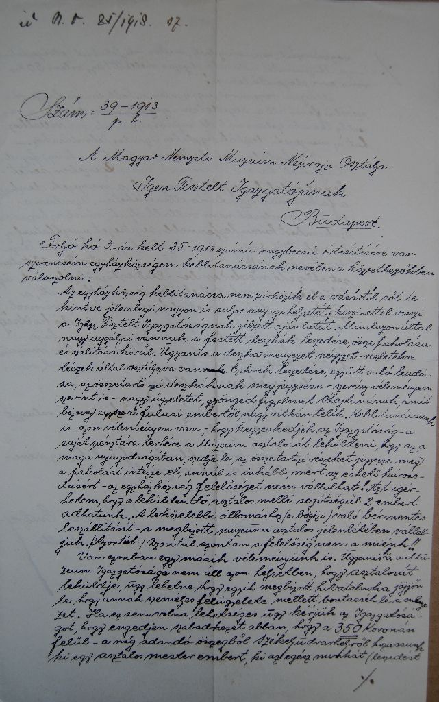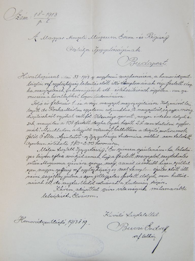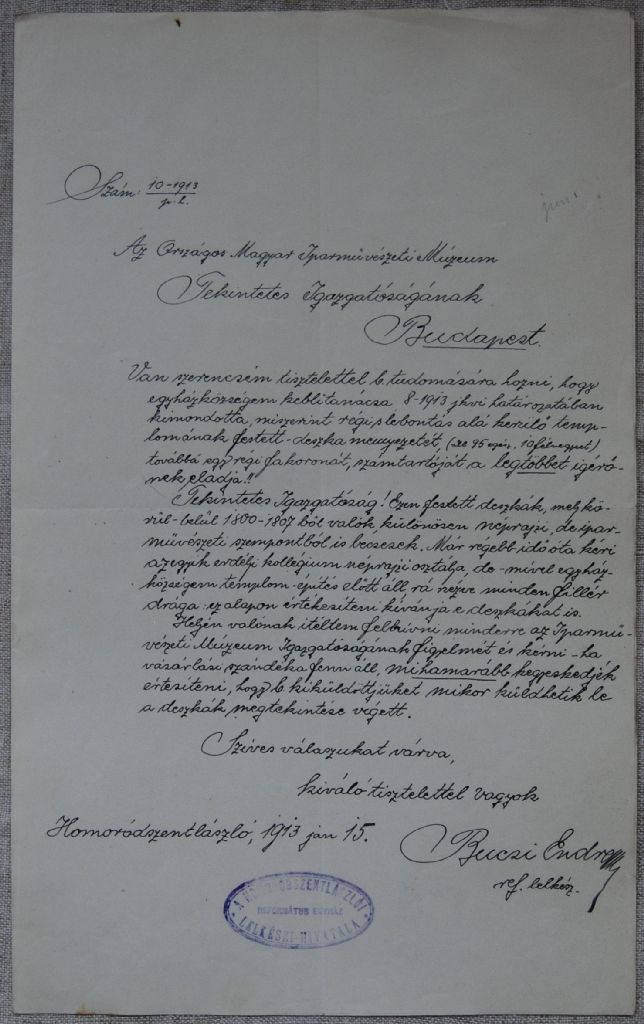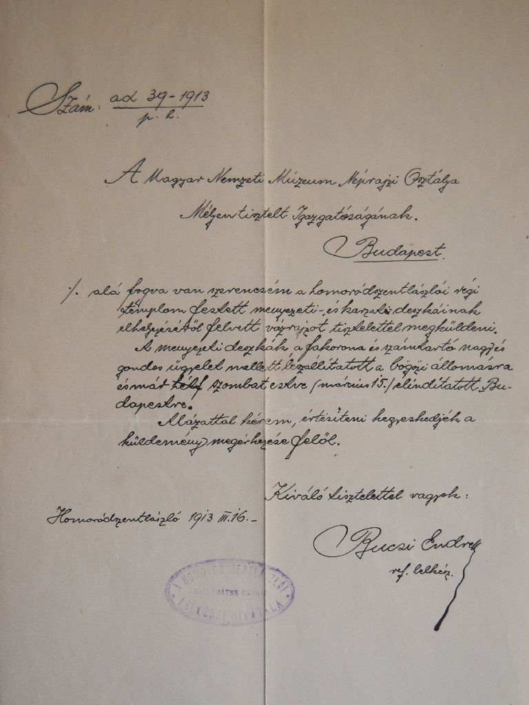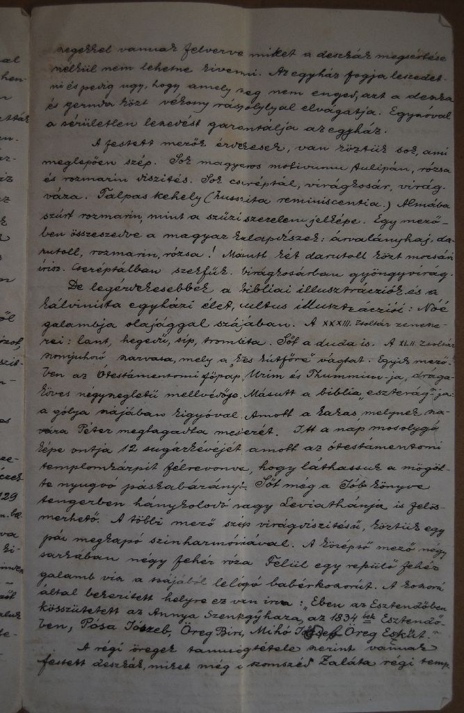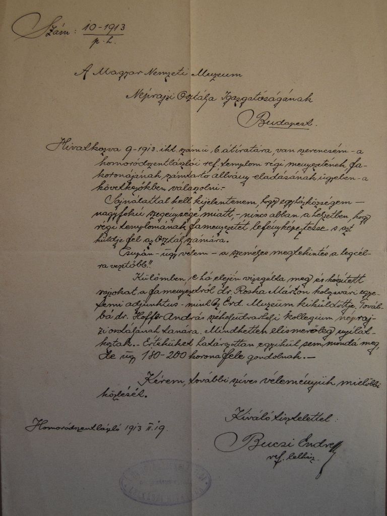 [8] Sajnos ezek pontos dokumetációja nem lelhető föl a Szabadtéri Néprajzi Múzeumban, a táblákat az Országos Műemléki Felügyelőség (továbbiakban OMF) állította össze és restaurálta. A fellehető dokumentumok jelzik egy tudományos restaurálási dokumentáció elkészítésének szándékát. Ez azonban – ha elkészült egyáltalán – a Szabadtéri Néprajzi Múzeumban nincs meg. Ezért felhívom arra a figyelmet, hogy a táblák előkerülési körülményeiről ismereteim csak hallomáson alapulnak!