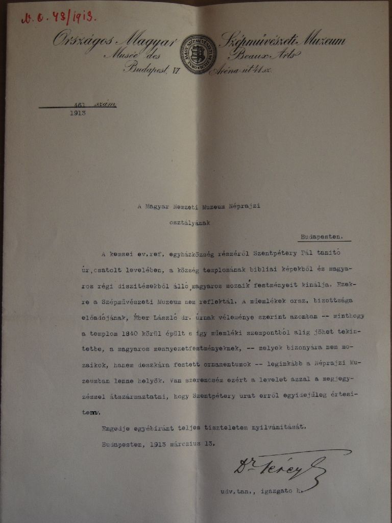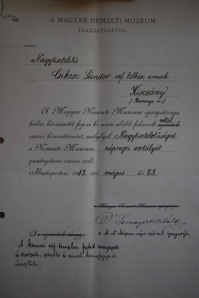 [6] KOVÁCS István László: Mánd, református templom. Bontás – 1975. Kézirat. Szabadtéri Néprajzi Múzeum FAD 54.; Itt jegyzem meg, hogy a bontáson való résztvételemet a múzeum akkori vezetője Hoffmann Tamás nem engedélyezte. Így azon a Szabadtéri Néprajzi Múzeum részéről csak építészek voltak jelen, és a kivitelező, az Országos Műemléki Felügyekőség sem biztosított néprajzost, esetleg régészt, művészettörténészt a bontáshoz. Az akkori megállapodás alapján az OMF-nek kellett volna elkészíteni a bontás dokumentációját. Ez azonban, legalábbis a Szabadtéri Néprajzi Múzeumban, nem lelhető föl.