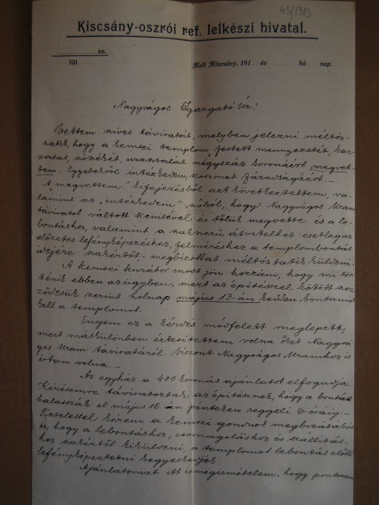 [13] GILYÉN Nándor Mánd, református fatemplom. Rekonstrukciós program. Kézirat. 10.