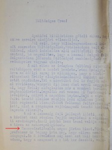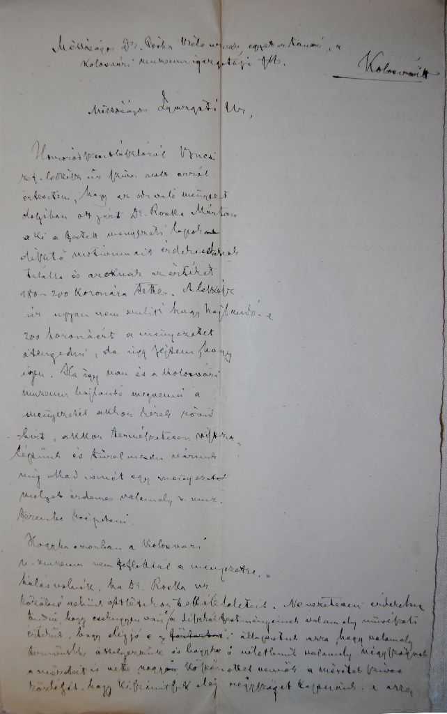 A berendezés tanulságai miatt újra elő kellett venni a Szabadtéri Néprajzi Múzeumban őrzött nem túlzottan bőséges bontási dokumentumokat, és egy olyan dologra figyeltem fel, amely eddig mindenki figyelmét – az enyémet is – elkerülte. KOVÁCS István László leírta, hogy „A „diadalív”-gerenda keleti oldalán középen előkerült egy 30×9 cm befoglaló méretű, fekete festékkel festett felirat, ami valószínű az ácsszerkezet készítésének dátuma: „Ad 1787” […]. A betűk görögösek, az ezres római számmal íródott, az egyik hetes fordított.”[29] Szerencsére Kovács István László egy nem túl jó minőségű fényképfelvételen[30] túl 1:2 méretarányú rajzban is megörökítette a feliratot,[31] amelyet azonban tévesen értelmezte (már maga ez a tény is nagymértékben hitelesíti a rajzot és fényképet), hiszen helyes olvasata: Ad 1582, esetleg 1587, mert az utolsó szám – a kopás vagy torzulás miatt – mindkét lehetőséget megengedi.