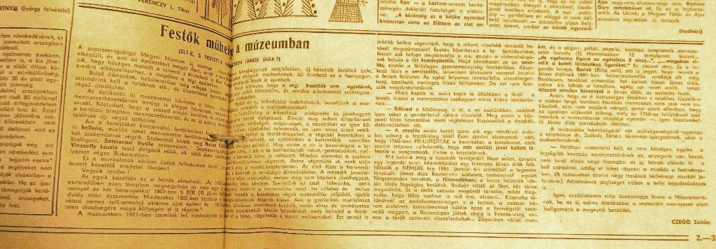 ![Az 1962-es felújításról szóló felirat a szószék hangvetőjén “Újra festették 1962. IX. 28-án […] Mihályné gondnokné Kotecs Zoltán egyházfi Németh Sándor lelkész”](/wp-content/uploads/2012/10/1351345174SzNMRo_146-300x168.jpg)