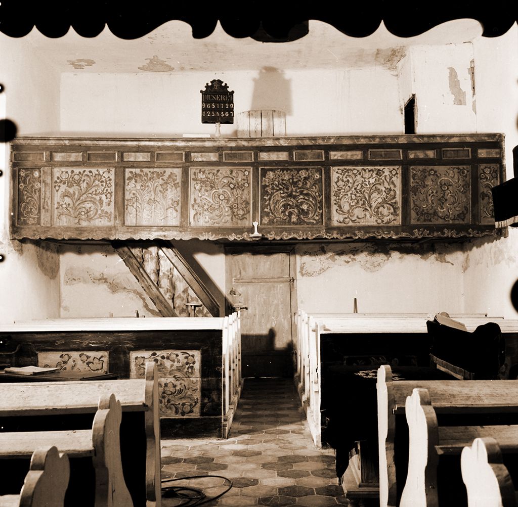 A szószék, a táblák és a padok igényes asztalosmunkáit elnézve, úgy tűnik, mintha a kórus nem ugyanannak a mesternek a műve lenne, bár az is elképzelhető, hogy a kis eklézsia nem tudott több pénzt ráfordítani. Megjelenését és stabilitását az átalakítás előnytelenül módosította. Alja föltehetően a tartóoszlopok eltávolítása következtében – melyeket négy födémbe rögzített vonóvas hivatott pótolni – mintegy négy-öt centiméterrel meg is süllyedt.